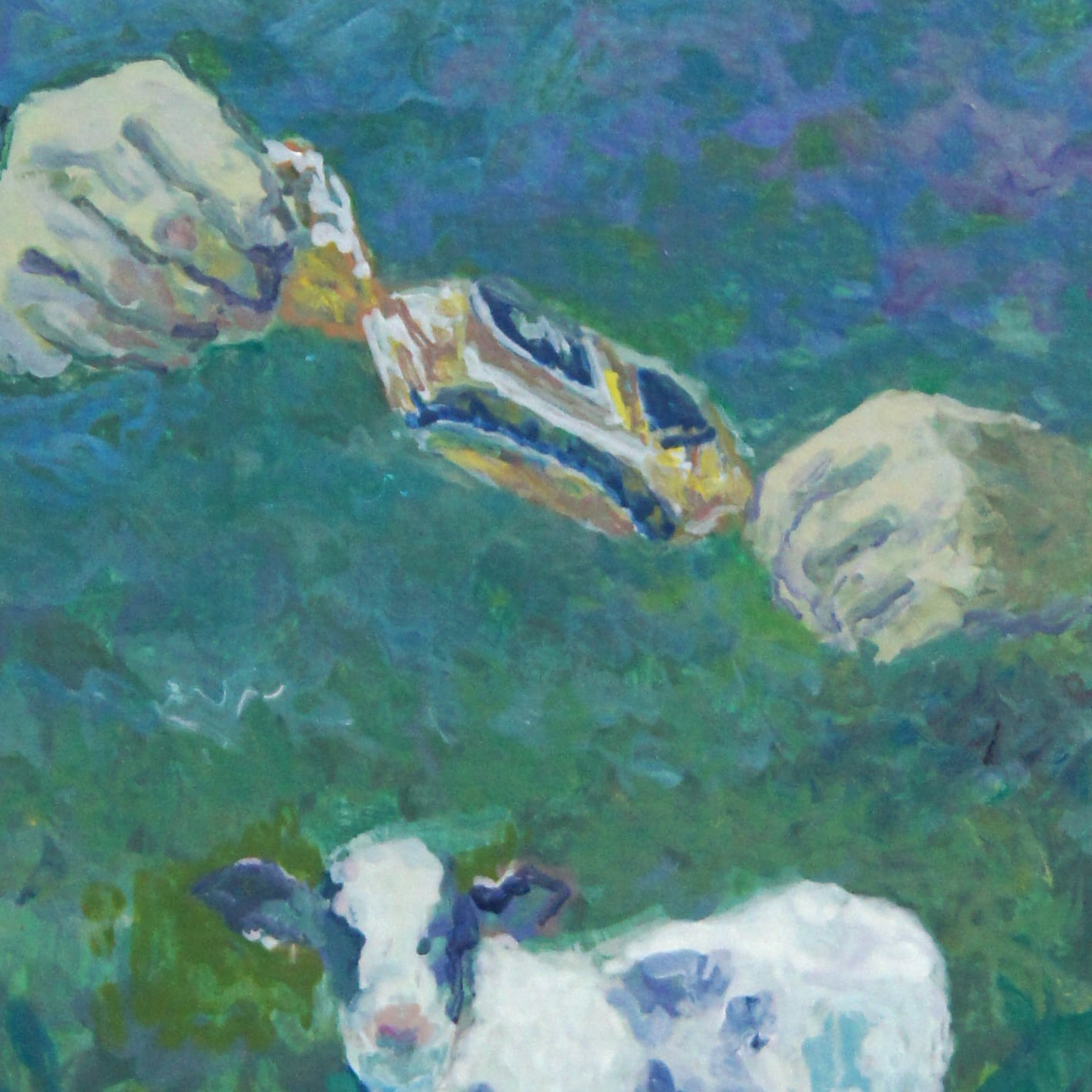 仔牛の模様と体の陰影を整理することに注力して、描きました。
